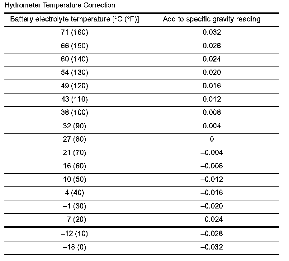 2. Use the chart below to correct your hydrometer reading according to electrolyte temperature.