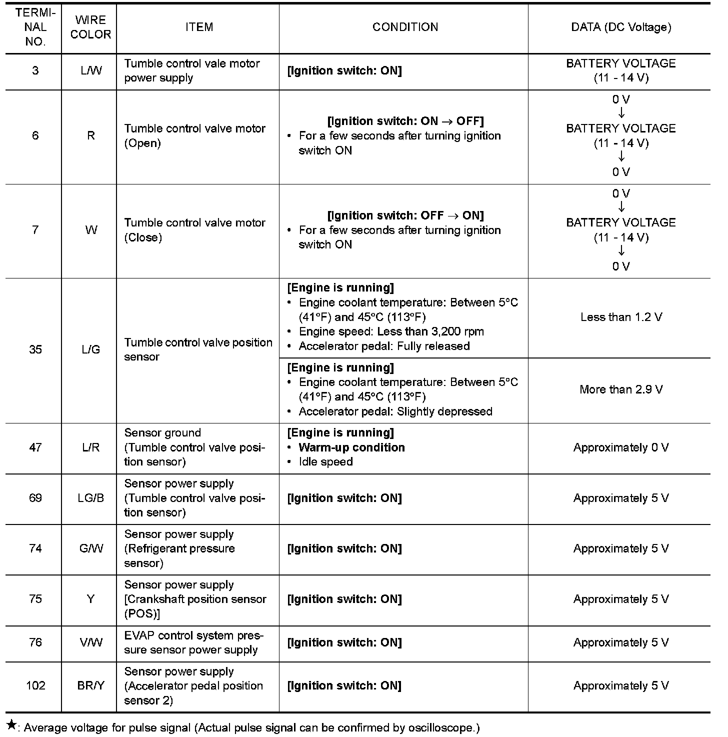 DTC P2014 TUMBLE CONTROL VALVE POSITION SENSOR
