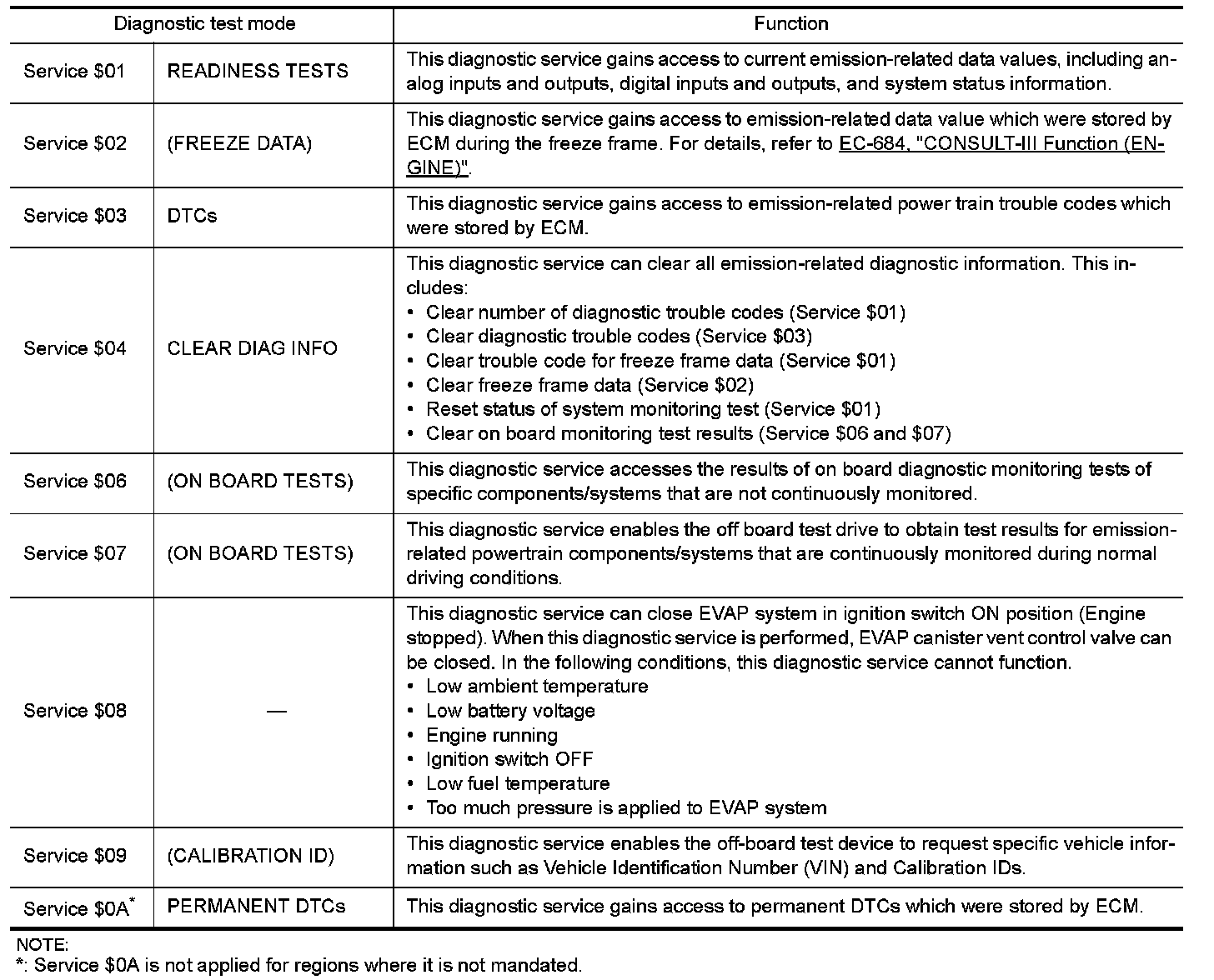 5. Perform each diagnostic service according to each service procedure.