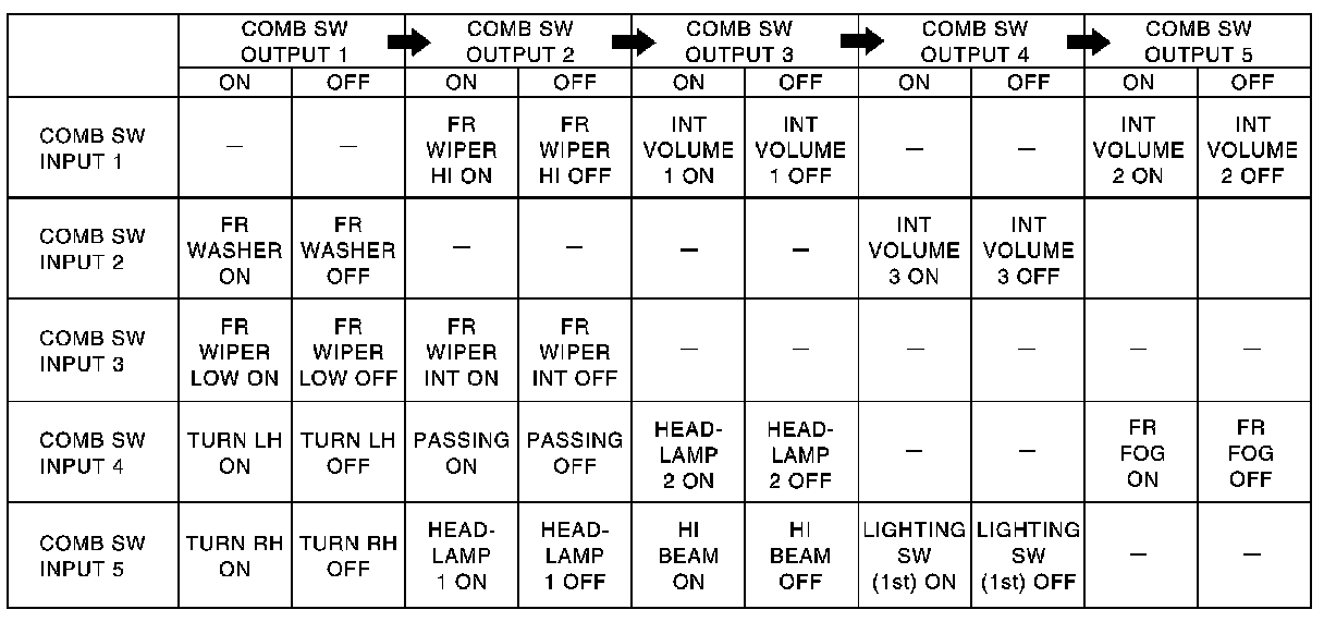 3. BCM - Operation table of combination switch