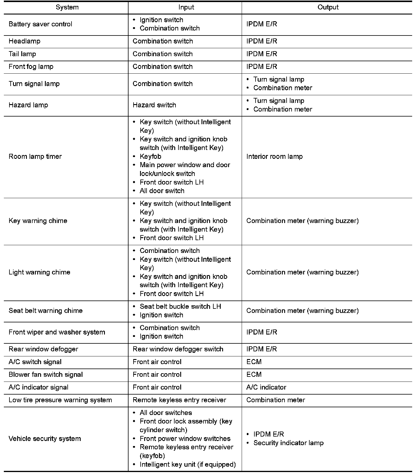 SYSTEMS CONTROLLED BY BCM AND INTELLIGENT KEY UNIT