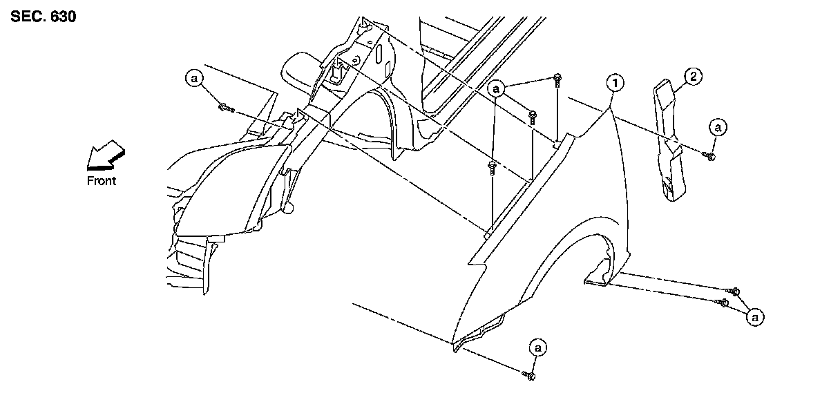 - After installing, apply touch-up paint onto the head of the front fender bolts.
