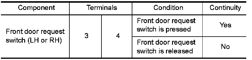 3. Check continuity between front door request switch terminals 3 and 4.