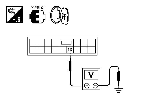 Check voltage between IPDM E/R harness connector E43 terminal 13 and ground.