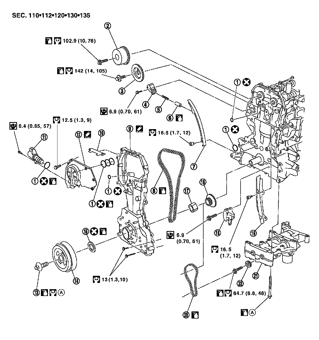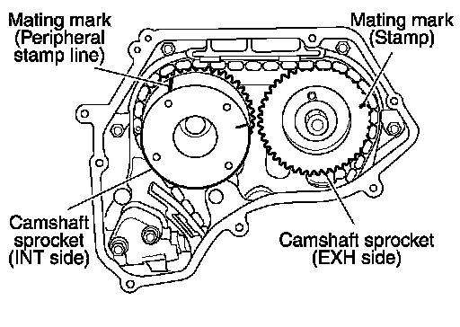 - Install it by lining up mating marks on each sprocket and timing chain.