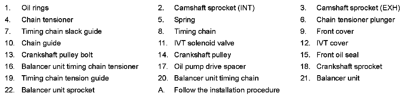 18. Remove timing chain for balancer unit, sprocket for balancer unit and crankshaft sprocket.
