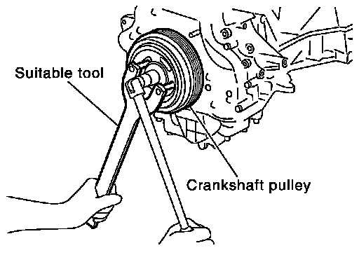 - Secure crankshaft pulley with a pulley holder to tighten the bolt.