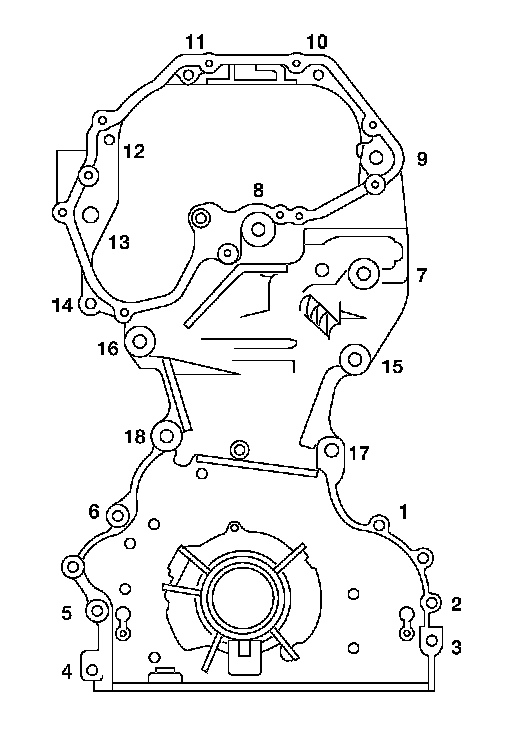 d. Tighten front cover bolts in the numerical order as shown.