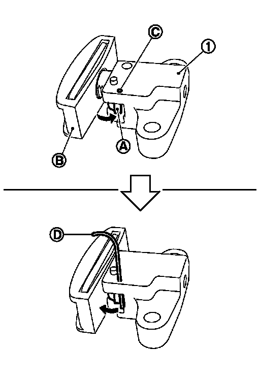 - The slack guide (B) is released by pressing the stopper tab