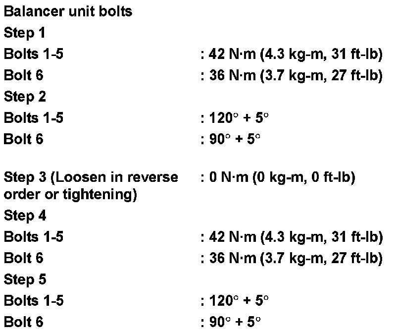 2. Install the balancer unit and tighten the bolts in the numerical order as shown, if removed:
