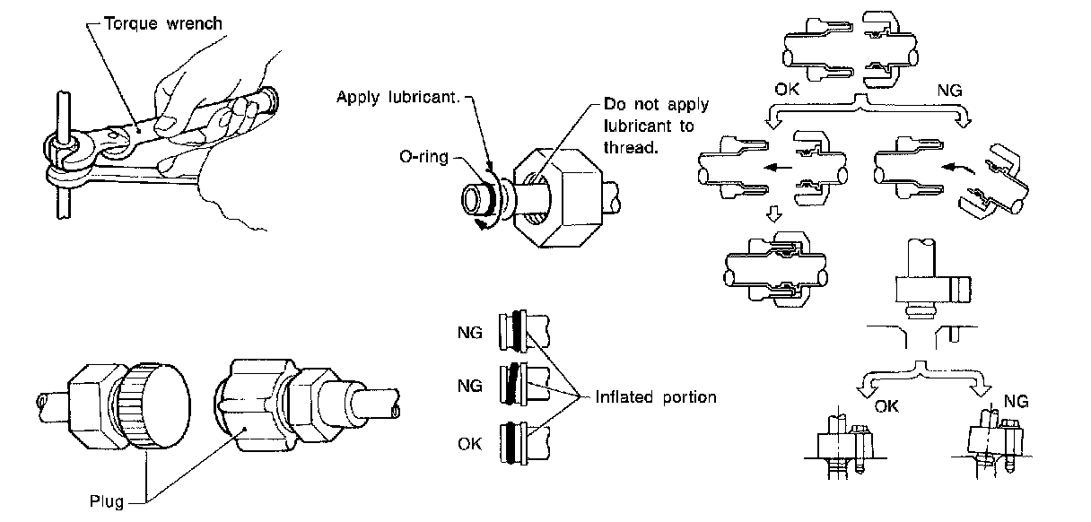 When the gas leaking point is found, disconnect that line and replace the O-ring. Then tighten connections of seal seat to the specified torque.