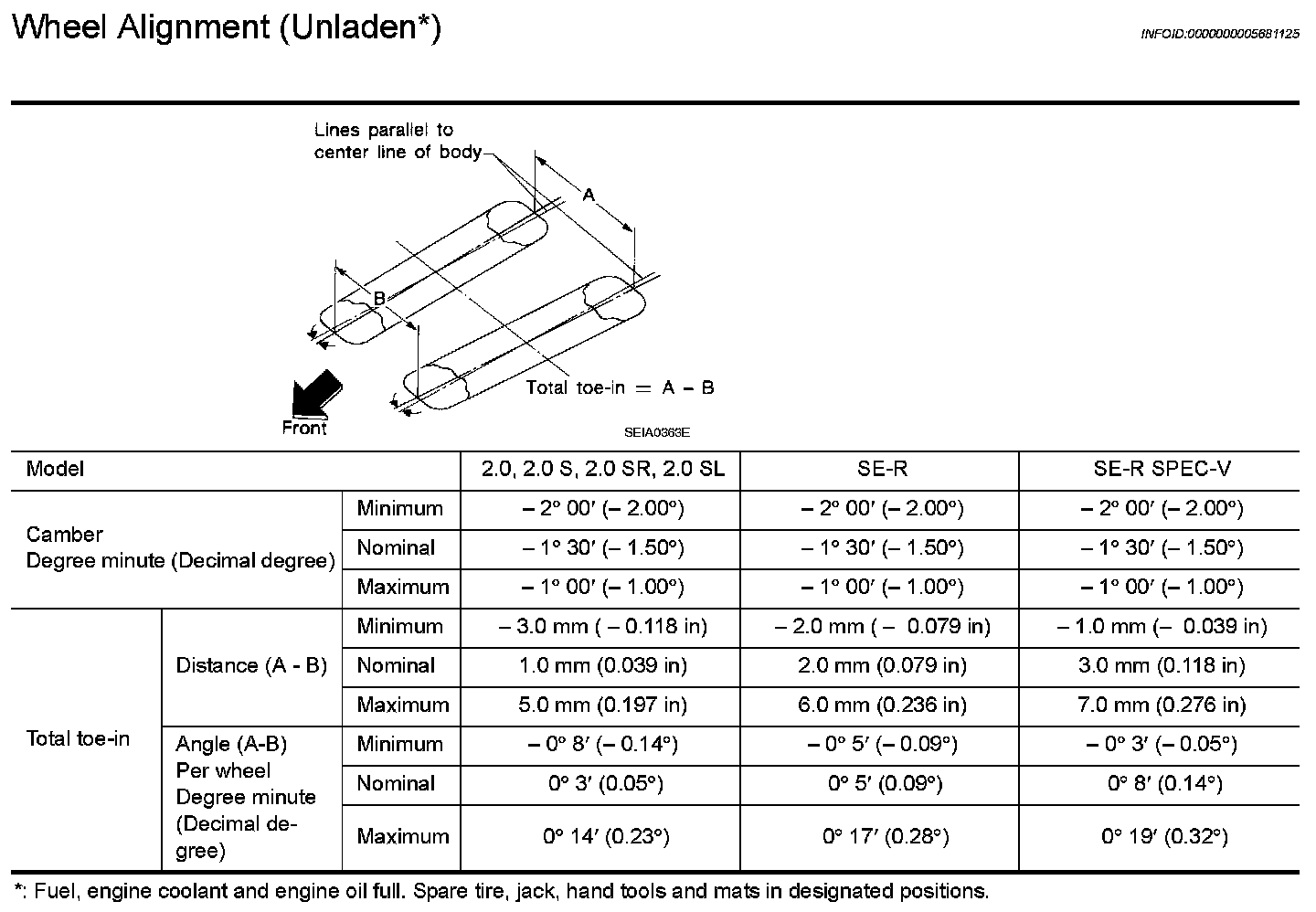 Wheel Alignment (Unladen*)