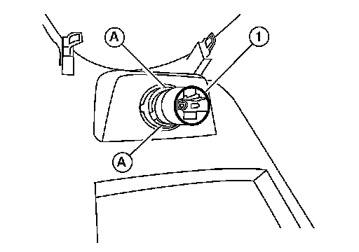 4. Remove the power socket (1) while pressing the tabs (A) on the ring, disconnect the power socket connector.