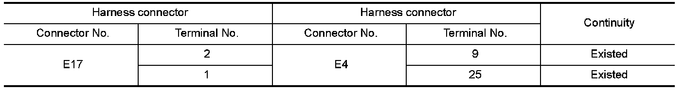 NO - Repair the main line between the harness connector E17 and the harness connector E4.
