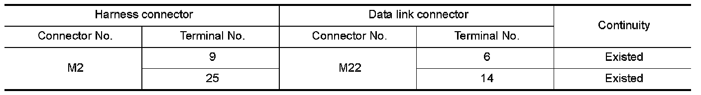 NO - Repair the main line between the harness connector M2 and the data link connector.
