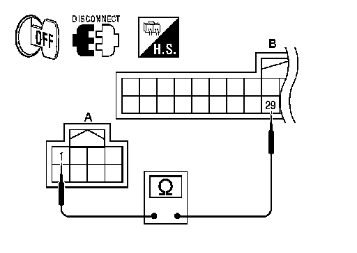 (A) terminal and combination meter harness connector (B) terminal.