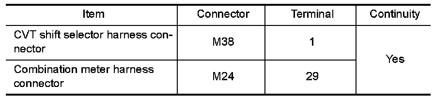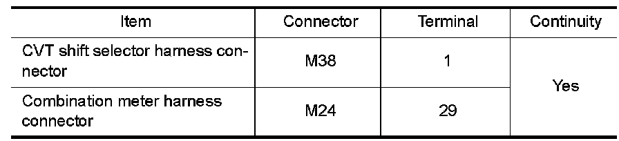3. Check continuity between CVT shift selector harness connector