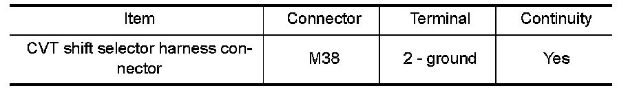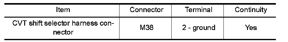 4. Check continuity between CVT shift selector harness connector terminal and ground.