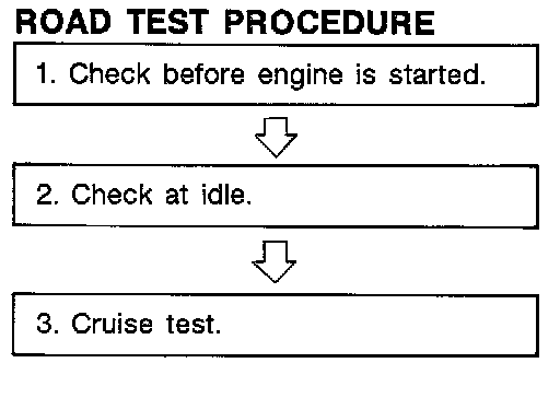 - Perform tests on all items until specified symptom is found. Troubleshoot items which check out No Good after road test.