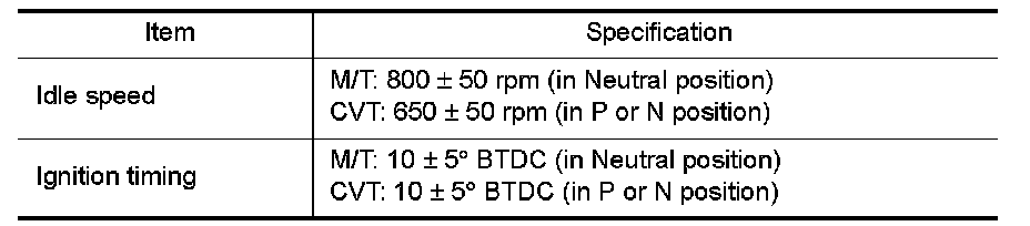 - Idle speed or ignition timing is out of the specification.