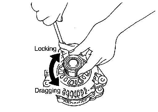 - If it locks or unusual resistance is felt, replace pulley.