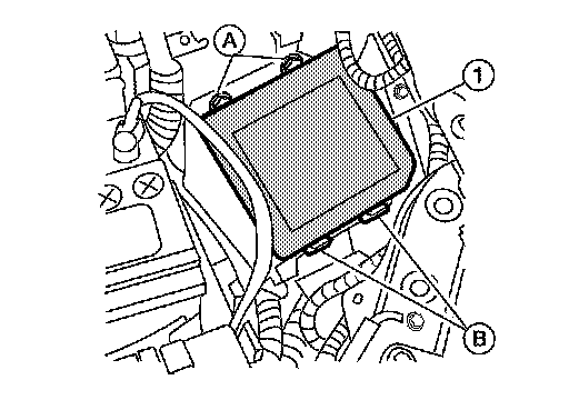 2. Lift up the IPDM E/R (1) while pushing and opening pawls (A) or
