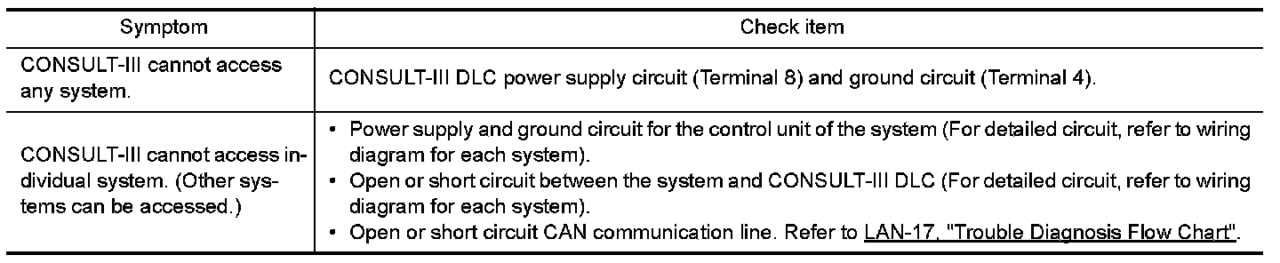 If the CONSULT-III cannot diagnose the system properly, check the following items.