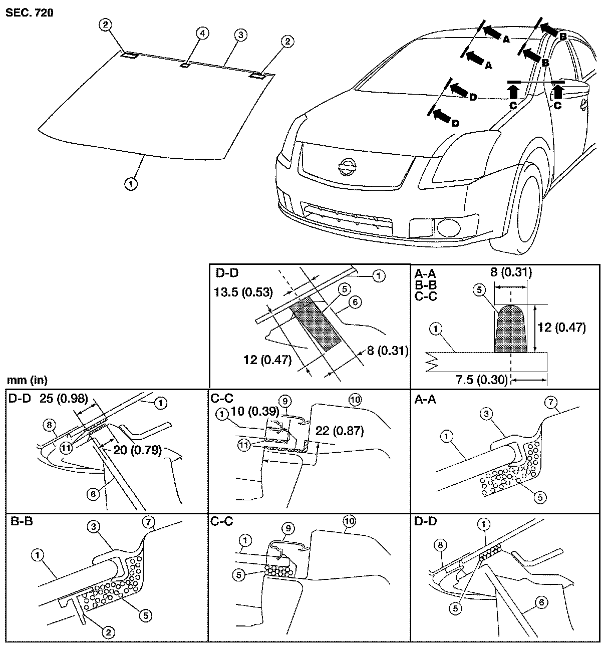 - Driving the vehicle before the urethane adhesive has completely cured may affect the performance of the windshield in case of an accident.