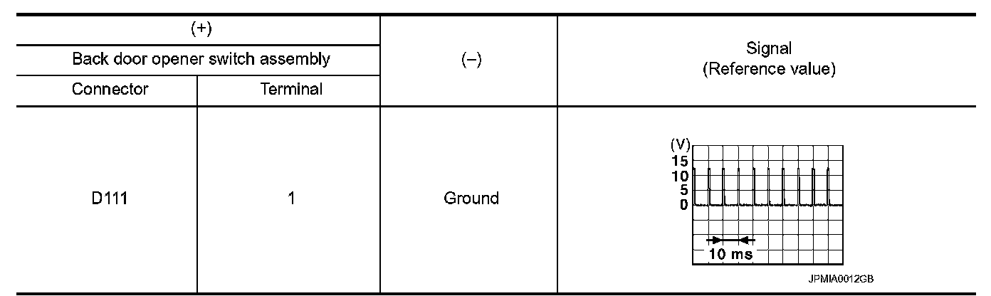 3.Check signal between back door opener switch assembly harness connector and ground using oscilloscope.