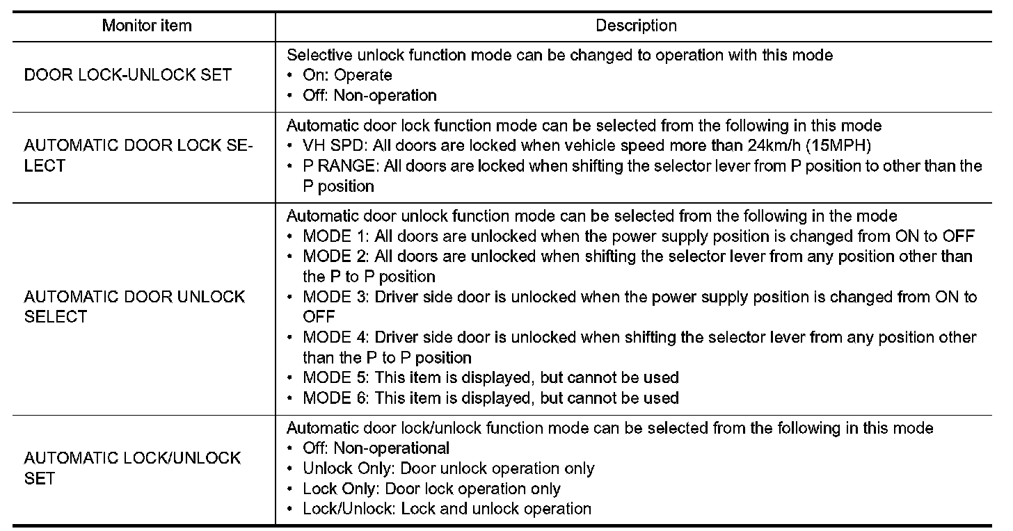 DOOR LOCK : CONSULT Function (