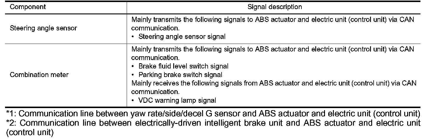 *1: Communication line between yaw rate/side/decel G sensor and ABS actuator and electric unit (control unit)