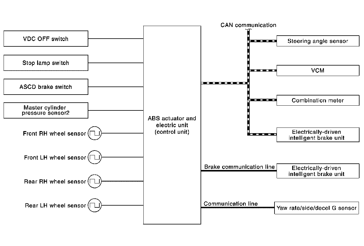 *2: Communication line between electrically-driven intelligent brake unit and ABS actuator and electric unit (control unit)
