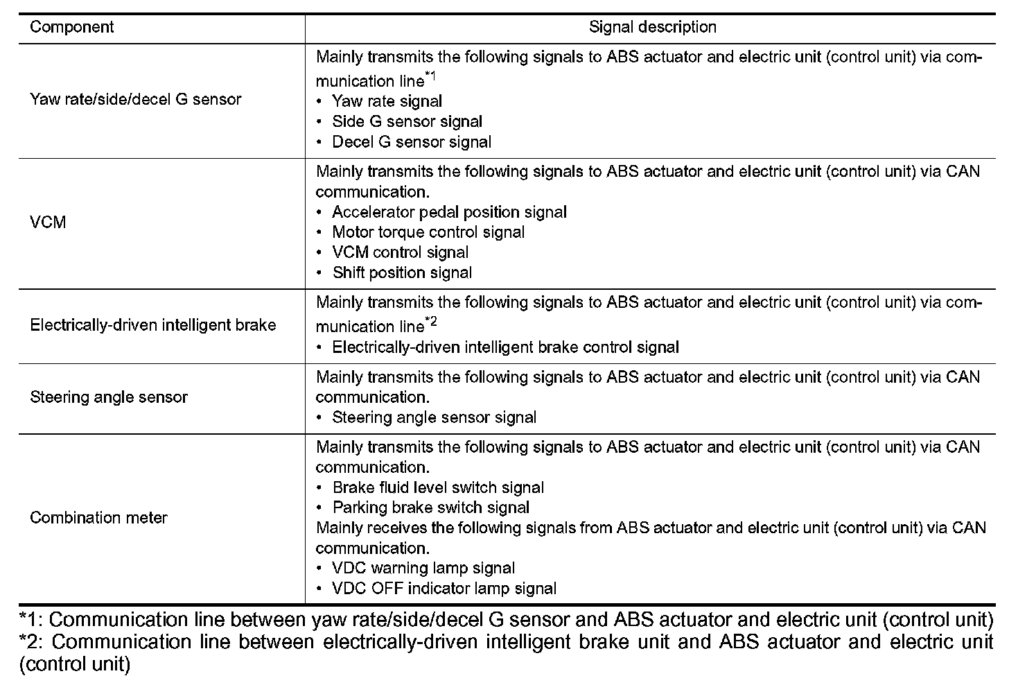 *1: Communication line between yaw rate/side/decel G sensor and ABS actuator and electric unit (control unit)