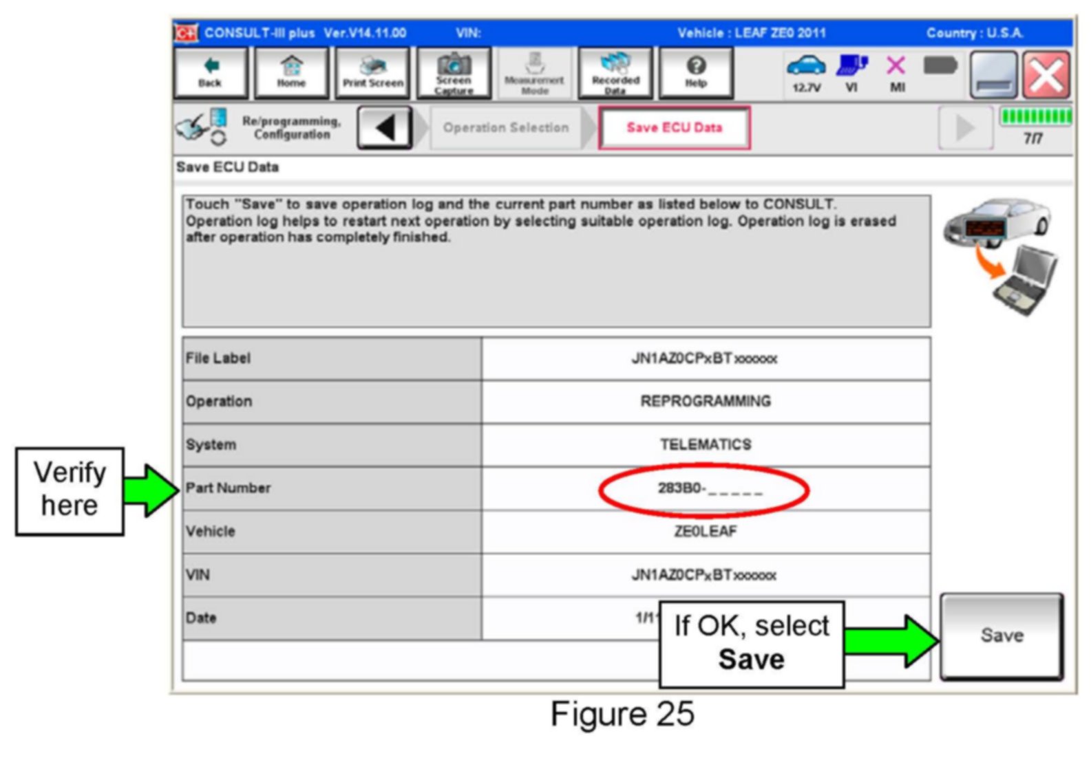 29. Write down the Part Number on the vehicle's repair order from Figure 25 and confirm if it matches one of the part numbers in Table "B" above.