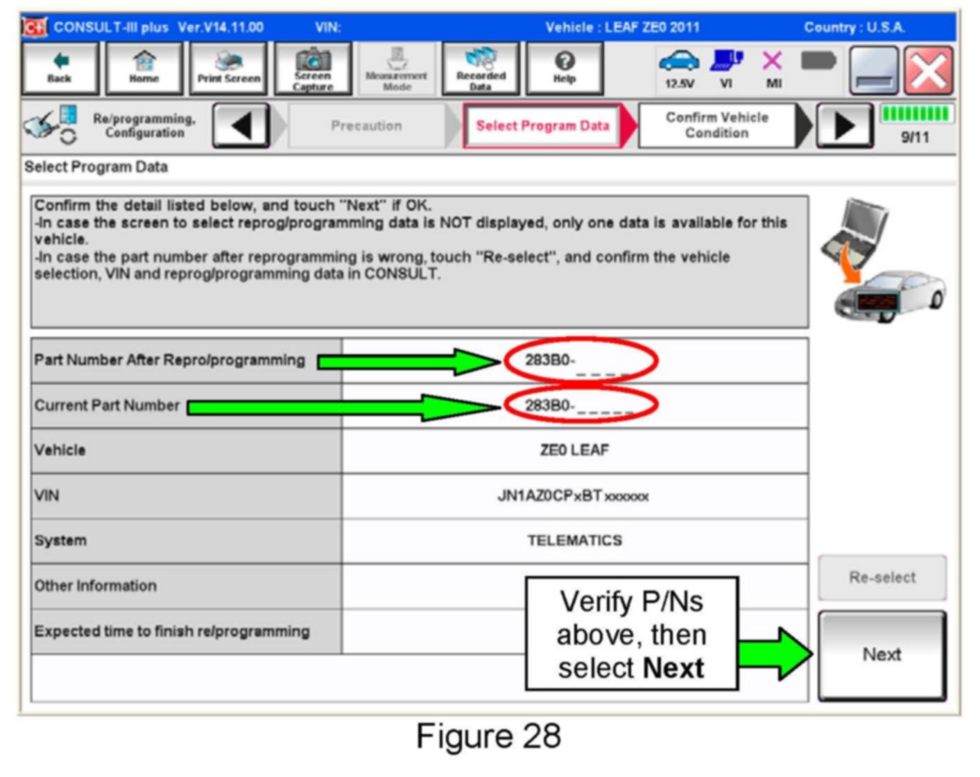 31. Verify the Current Part Number matches the Part Number written down in step 25, and then select Next.
