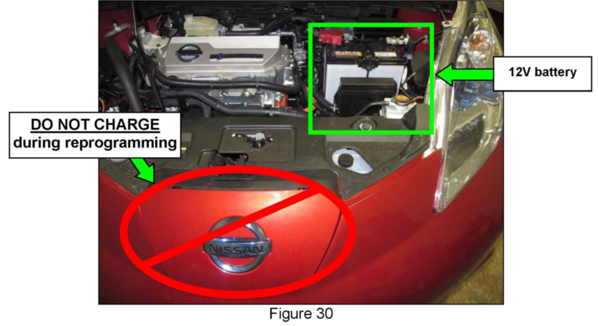 If a Mobile Technician performs the reprogram, make sure a fully charged 12 V battery (with jumper cables) or portable battery charger is used.