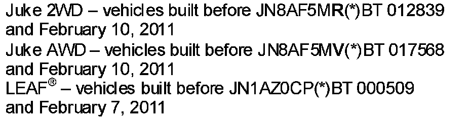 ^ The additional I-Key(s) can be from a different Juke or LEAF(R) only.
