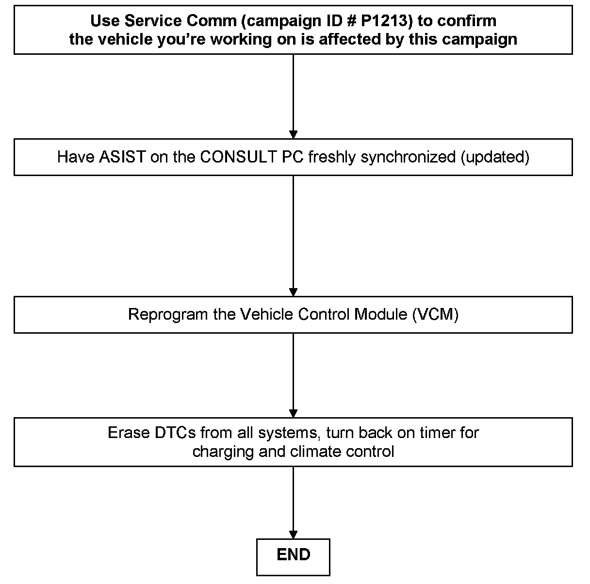 Nissan has assigned identification number P1213 to this campaign. This number must appear on all communications and documentation of any nature dealing with this campaign.