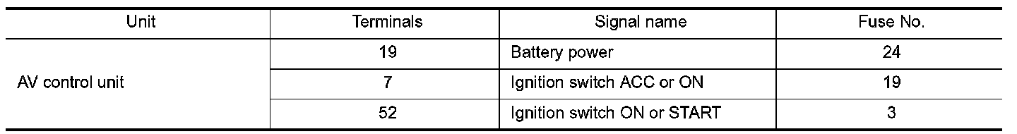 Check that the following AV control unit fuses are not blown.