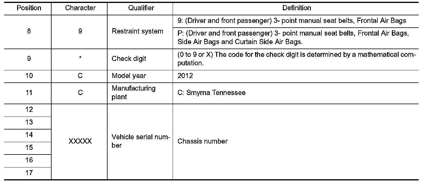 Vehicle Identification Number Arrangement
