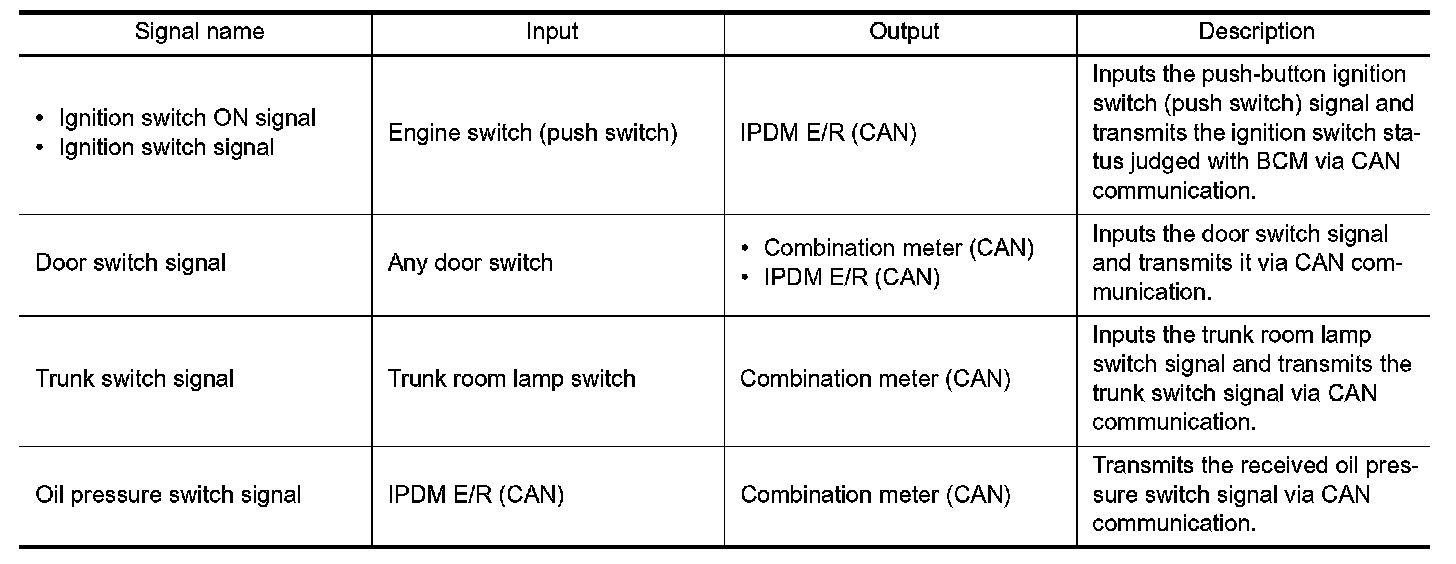 Signal transmission function list