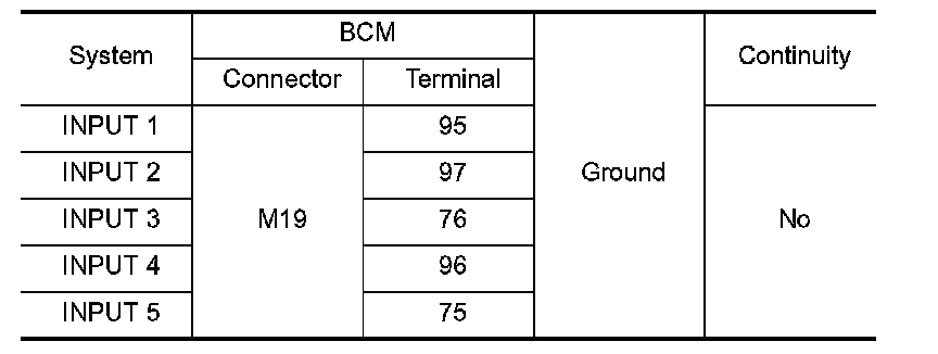 Check for continuity between BCM harness connector and ground.