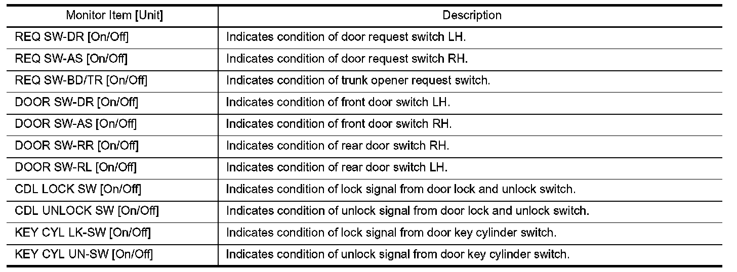 DOOR LOCK : CONSULT Function (