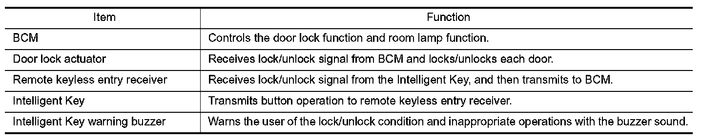 INTELLIGENT KEY : Component Description