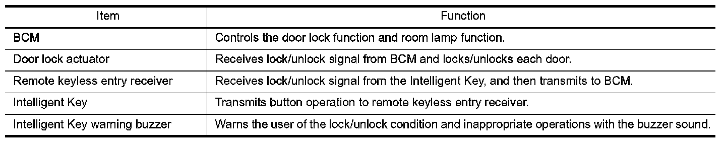 INTELLIGENT KEY : Component Description