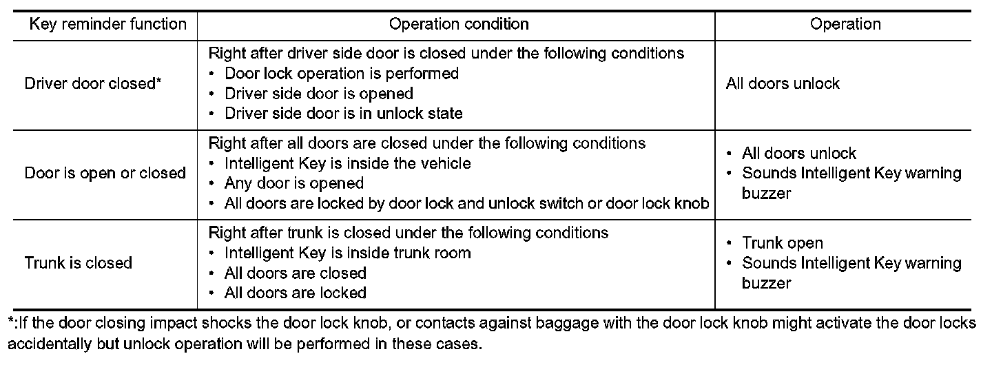 - Remote controller door lock button operation of Intelligent Key