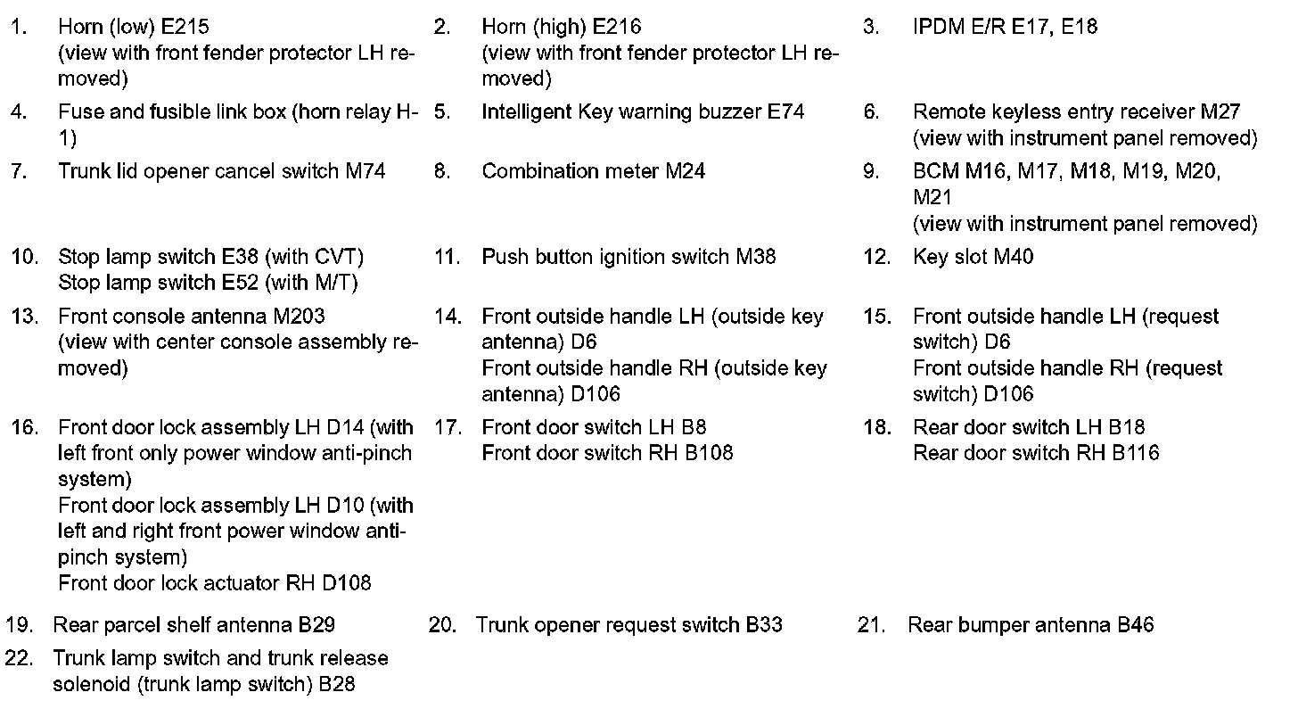 INTELLIGENT KEY : Component Parts Location