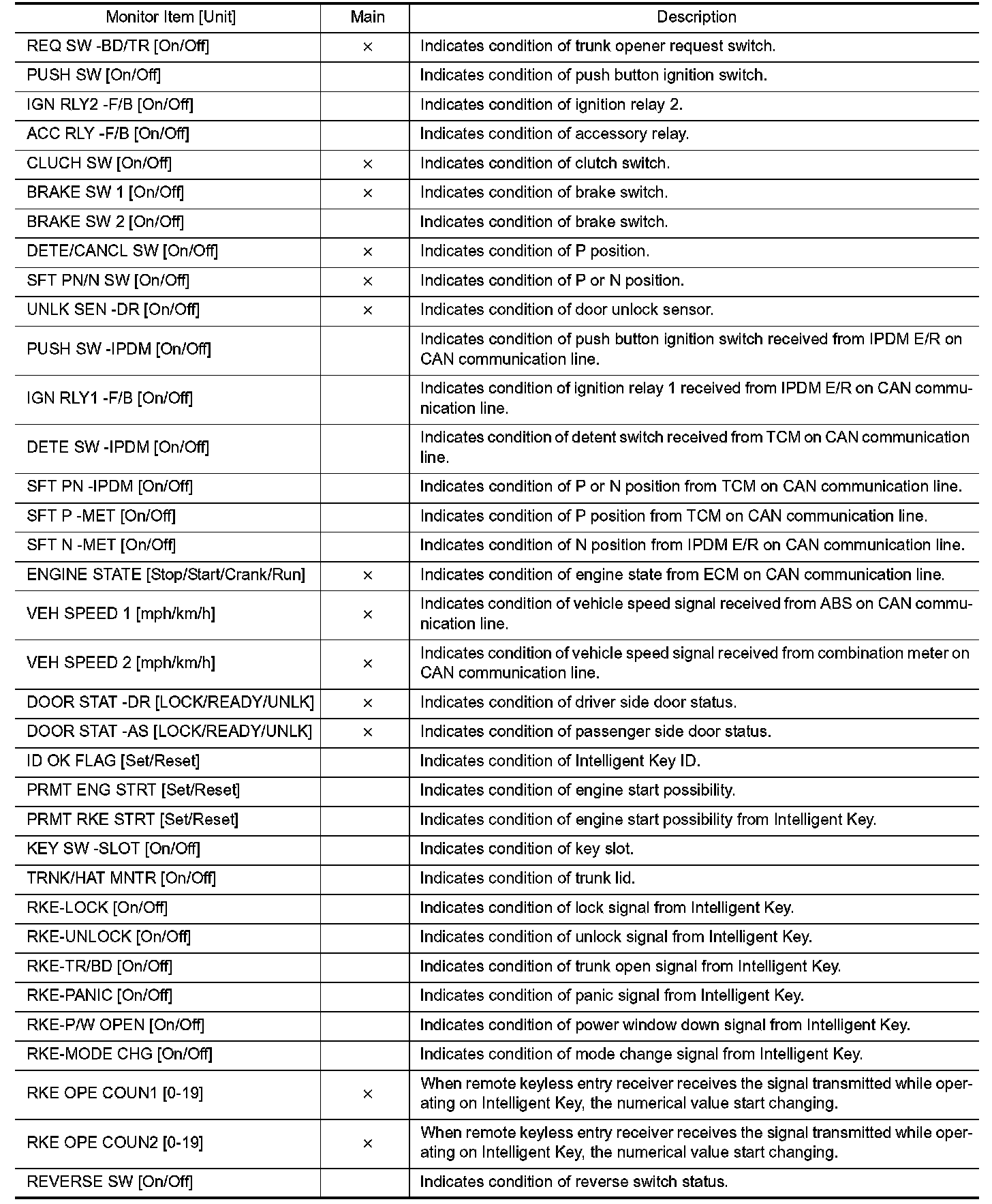 INTELLIGENT KEY : CONSULT Function (BCM - INTELLIGENT KEY)