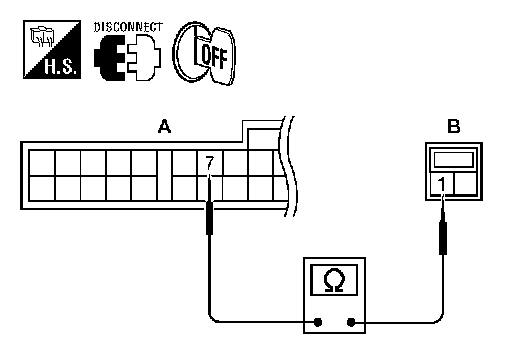 3.Check continuity between front air control connector M152 (A) terminal 7 and sunload sensor harness connector M56 (B) terminal 1.