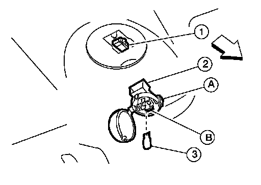 3.Release the tab (B), then pull trunk room lamp (2) away from body opening.
